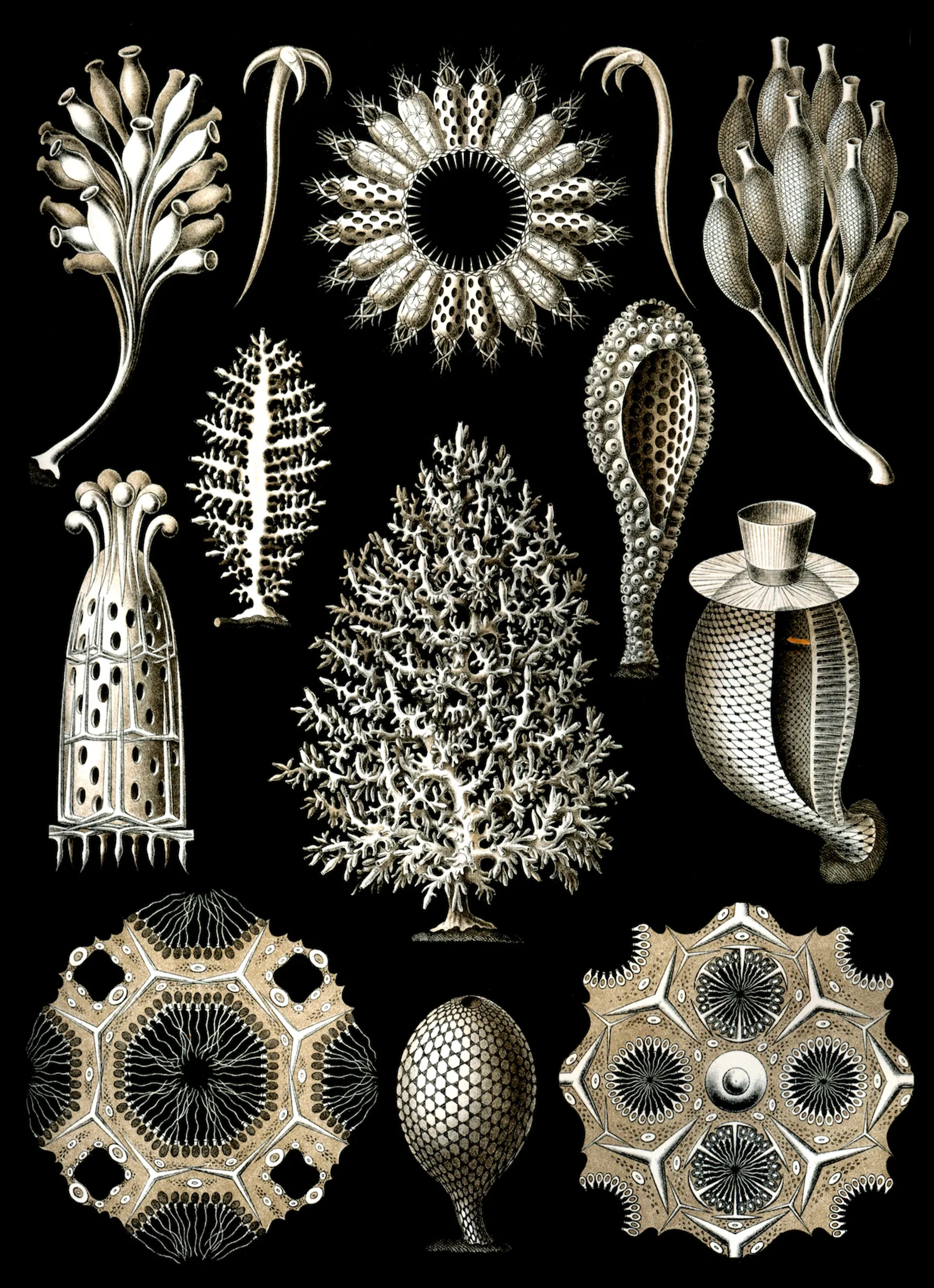 Some calcareous sponges (Ernst Haeckel, Kunstformen der Natur)